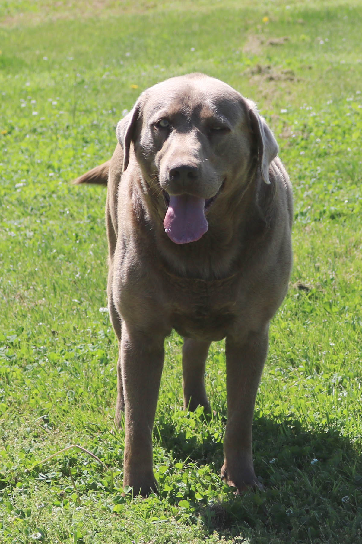 Shimmering's Totha Maximum aka...Max Max is Shimmering's handsome silver stud. He is a half brother to Titan and sired his first litter with Sheba in November, 2015. He is an AKC registered Silver Labrador with the big blocky English body and beautiful block head. Like Titan, he is a BIG boy but he is really just a big baby! He loves to play fetch and also has a wonderful temperament. We are so happy to have found another wonderful stud and look forward to many amazing pups in his future. Titan has been health tested and cleared of the following 7 diseases known to Labradors EIC, DM, CNM, HNPK, SD2, RD/OSD & PRA/prcd.