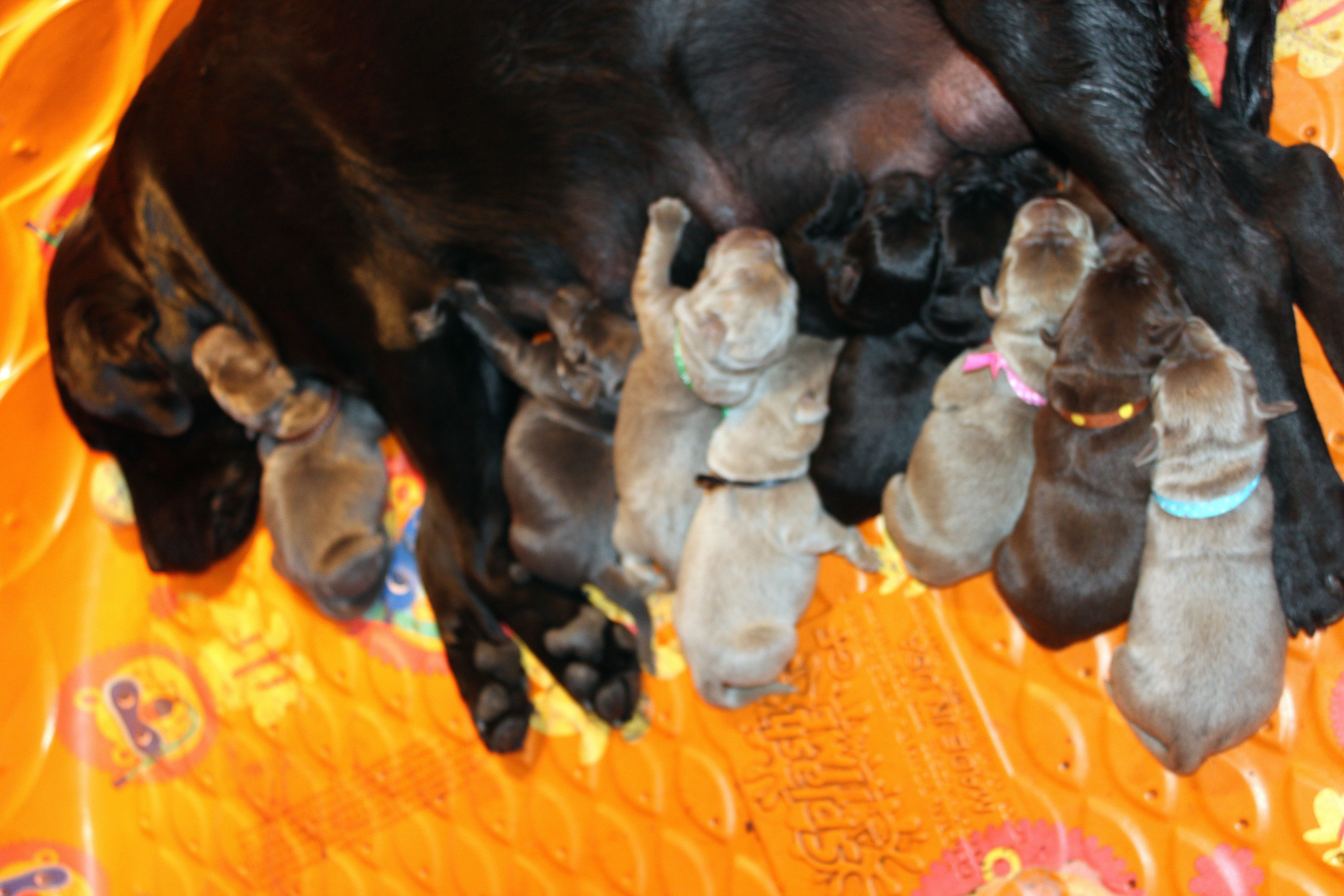| Puppy #4 in with the pink ribbon is Chino at 1 week!! |