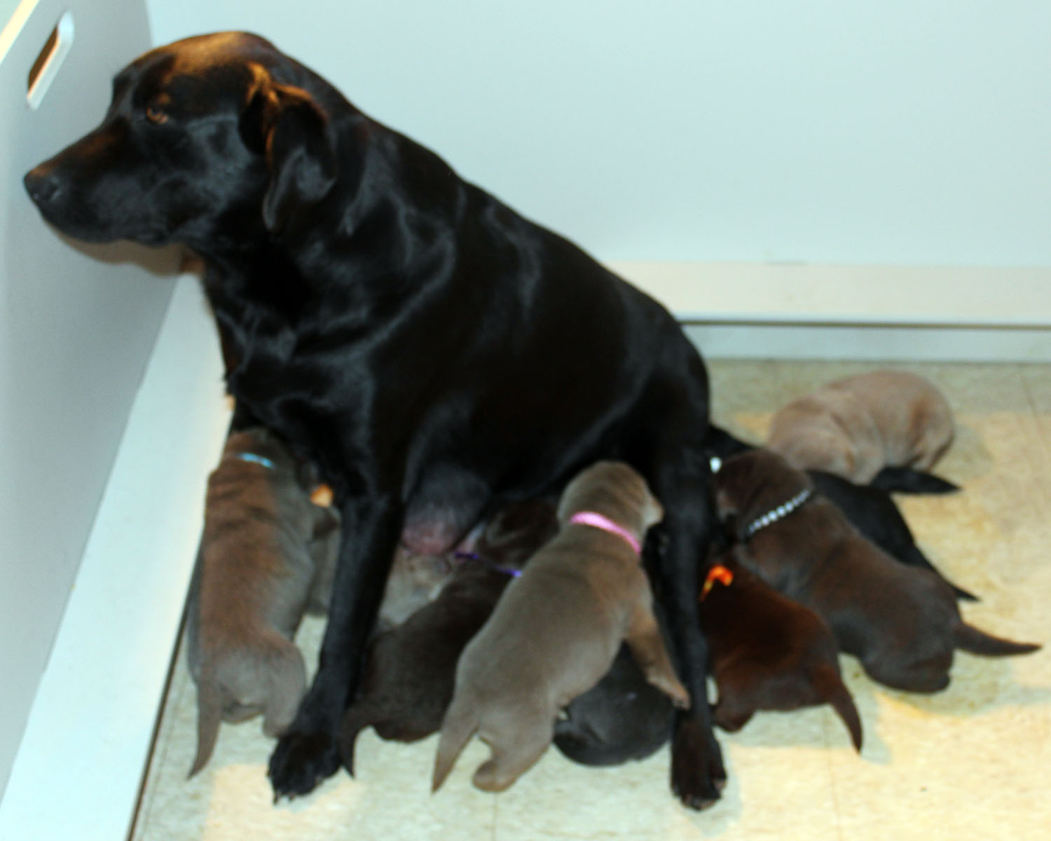 | Sheba with 2 week puppies. |