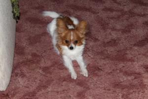 | Wiggles is our 4 year old pappillon. She is tiny but thinks that she is just as big as her Labrador sisters. |