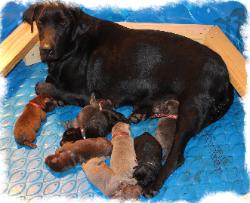 | Sheba with 1 week old puppies. |